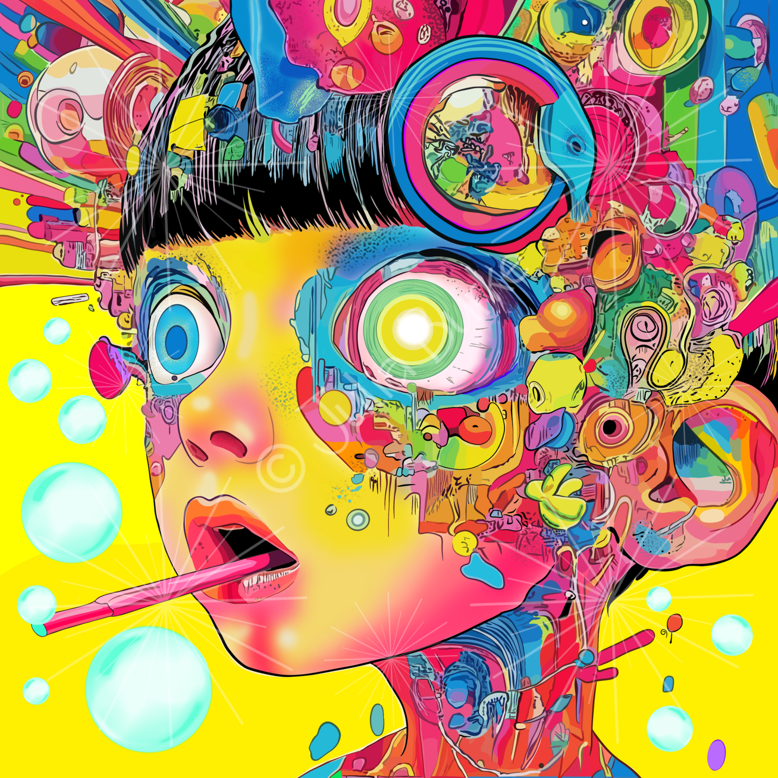 My digitalart is a vibrant fusion of surreal imagination, bold color, and playful design. From psychedelic blacklight pieces to pop art pets, mid-century modern mashups, and whimsical garden scenes, each collection invites viewers into a uniquely joyful visual scene.