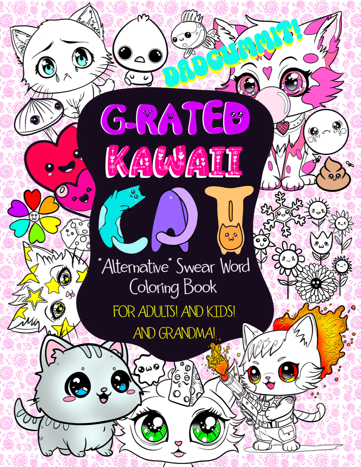 The following illustrations are from a coloring book I made: the “G-Rated Kawaii Cat “Alternative” Swear Word Coloring Book”. After seeing many adult coloring books using swear words for sale, I thought I’d make one using old-timey, more “G-rated” expressions. In retrospect I think the market prefers the more modern swear words, but nonetheless, I translated my nostalgic sentiments into what ended up being some of my favorite work: cute, kawaii, fun illustrations innocent enough for every age.